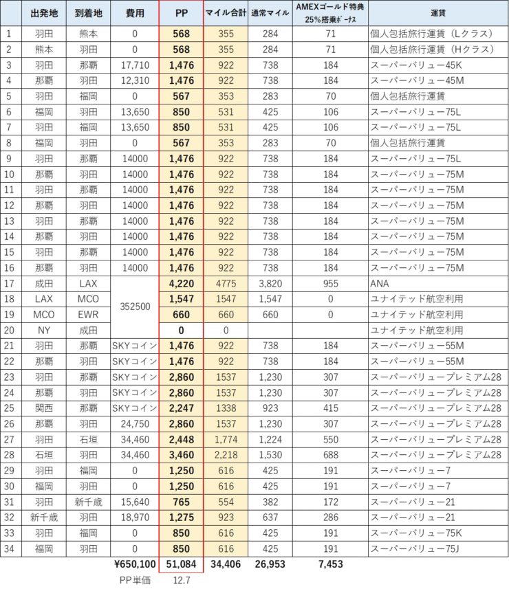 一番の要因はせっかく有償で「LAX→MCO→EWR→NRT」を取ったのに、最後のEWR→NRTが全く加算されなかったことですね!